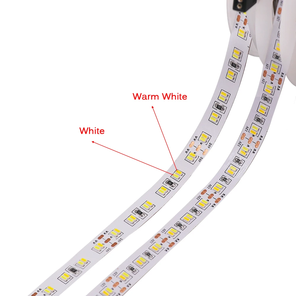 12V Ha Condotto La Luce del Nastro CCT SMD 3014 5m 1080 Pixle Striscia Flessibile Led 216LEDs/m Super brillante Decorazione Della Casa Bianco + Bianco Caldo