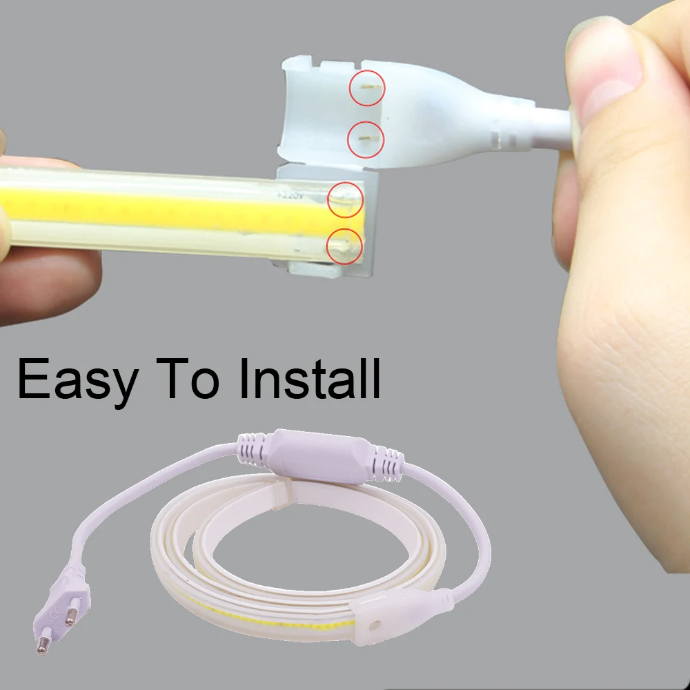 220V COB Led Strip Light con interruttore spina di alimentazione 360LED/m Super Bright Waterproof CRI 90 illuminazione lineare nastro LED flessibile