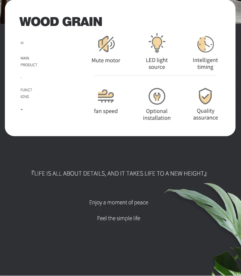 - Features 5: Wood Ceiling Fan