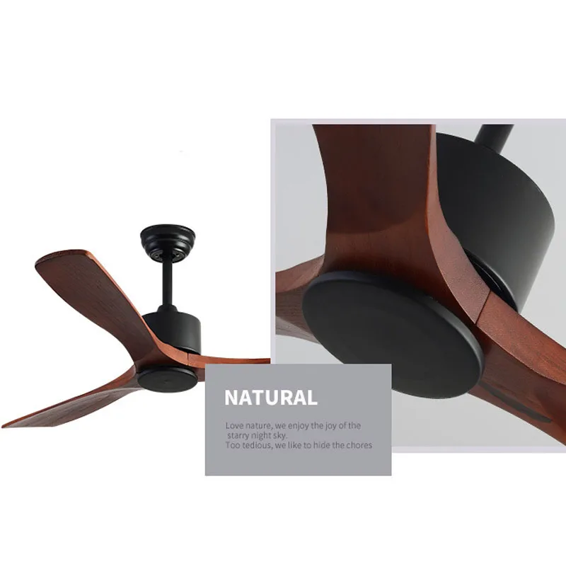 Ventilatori da soffitto in legno da 52 pollici senza luce ventilatore da soggiorno per camera da letto di casa ventilatore da soffitto 220v telecomando in legno 3 pale in legno